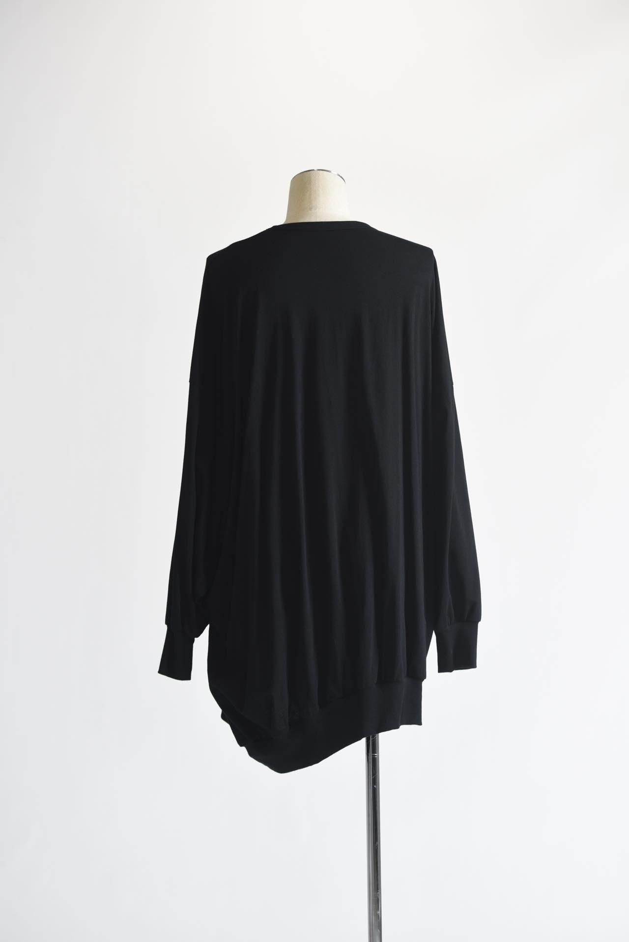 アシンメトリーなシルエットとリブが印象的なオーバーサイズプルオーバー。