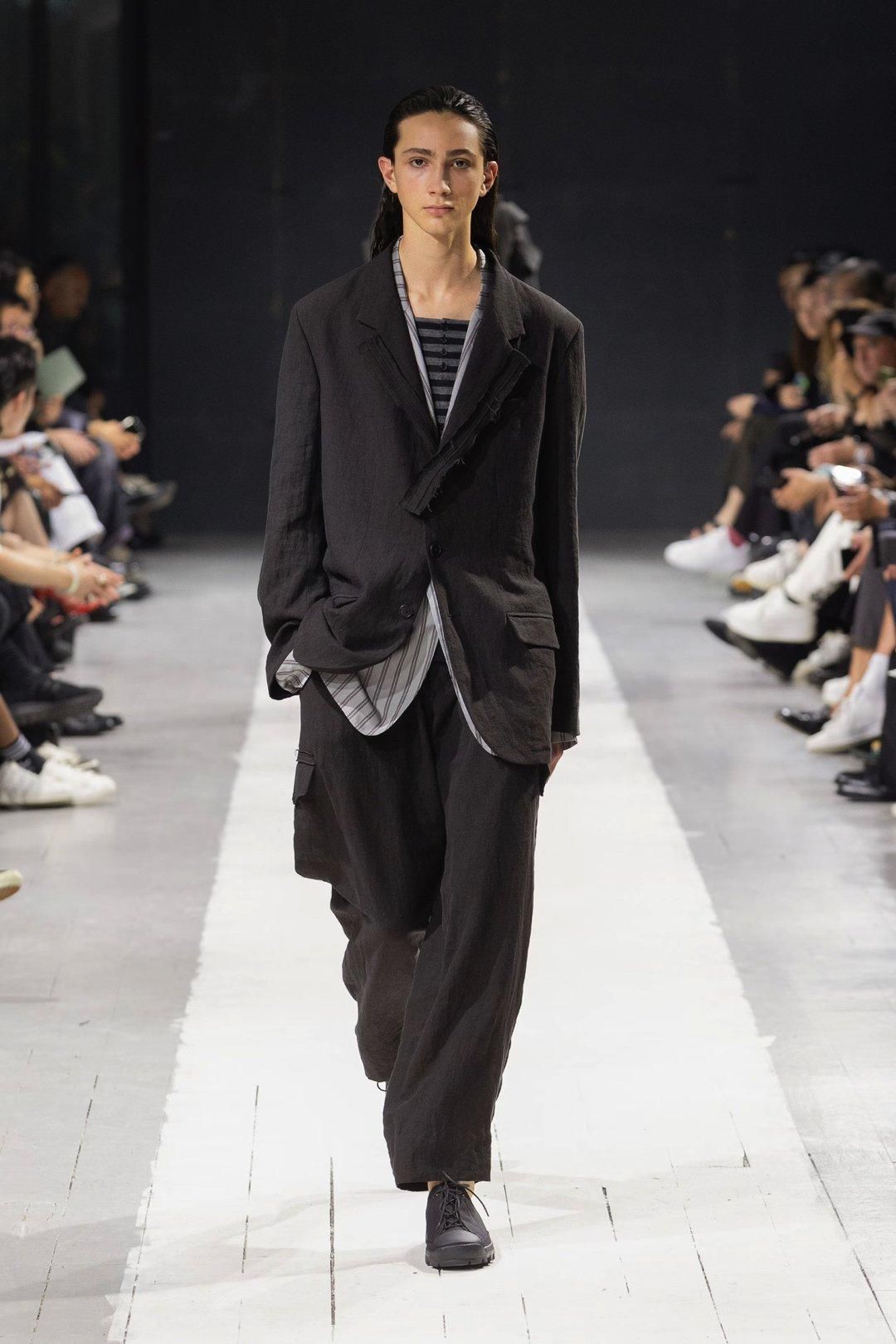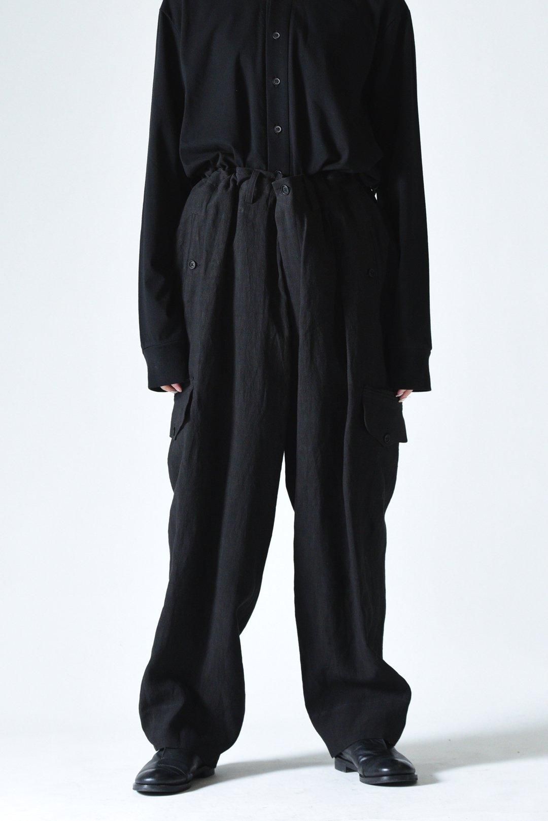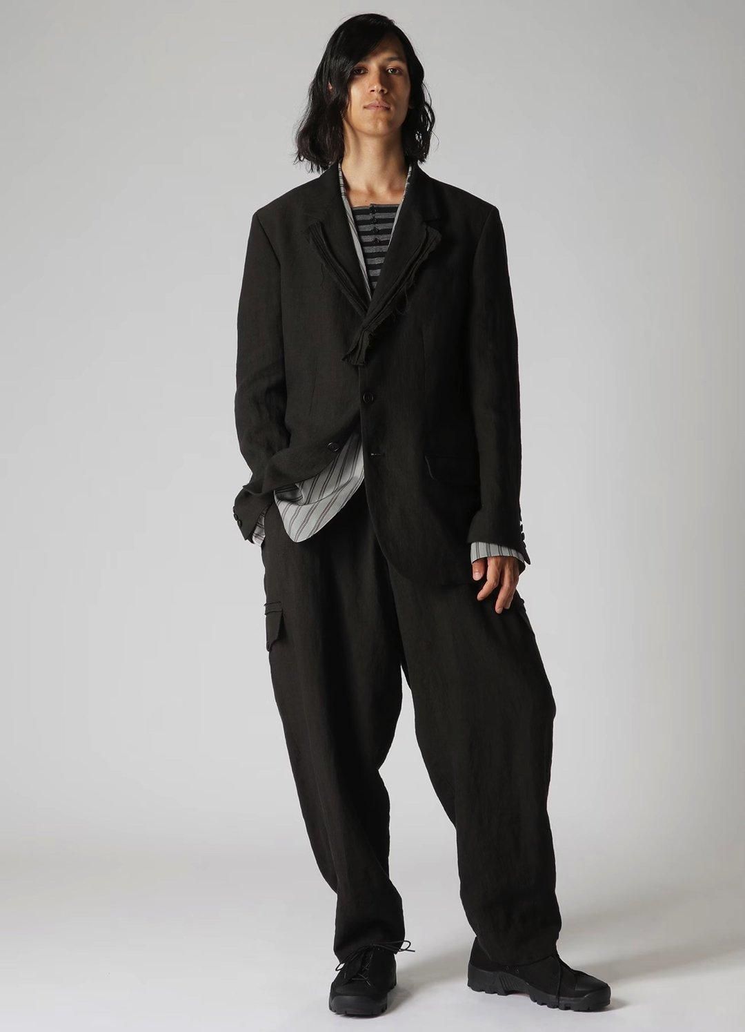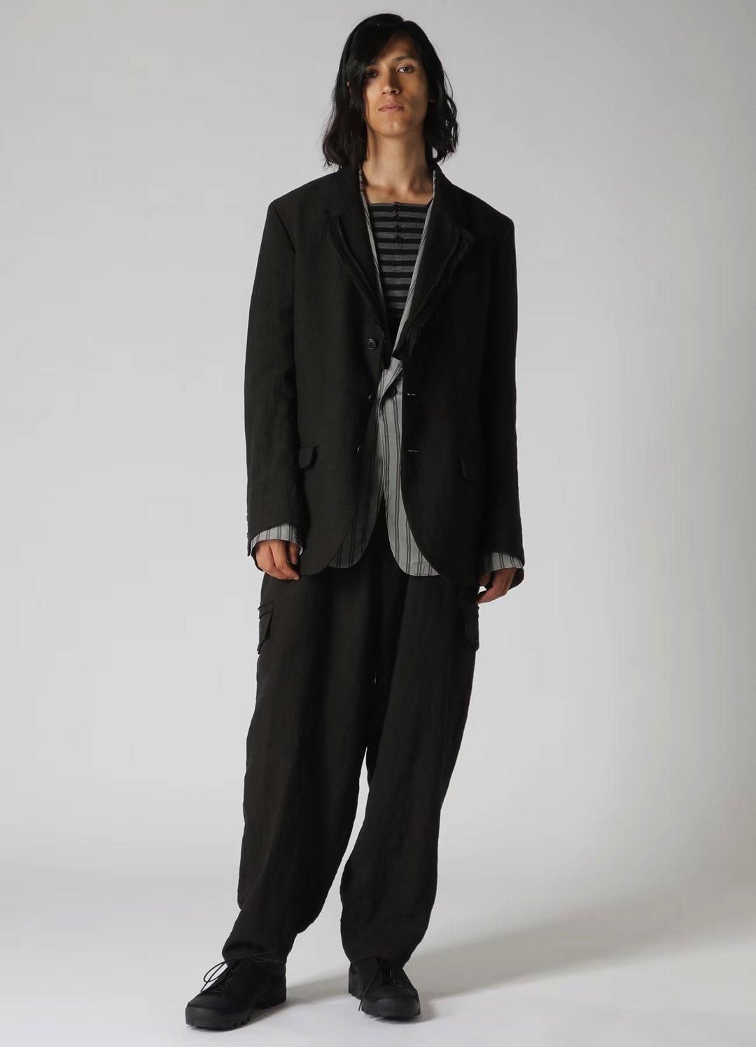 Yohji Yamamoto POUR HOMME SPRING/SUMMER 2024 COLLECTION LOOK15に登場したリネンサスペンダーパンツ。