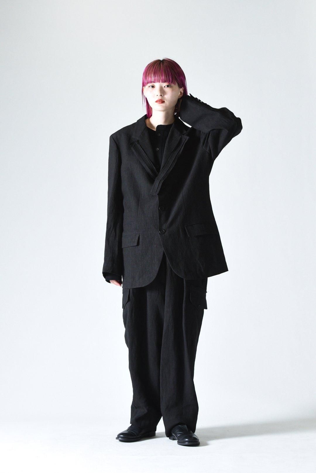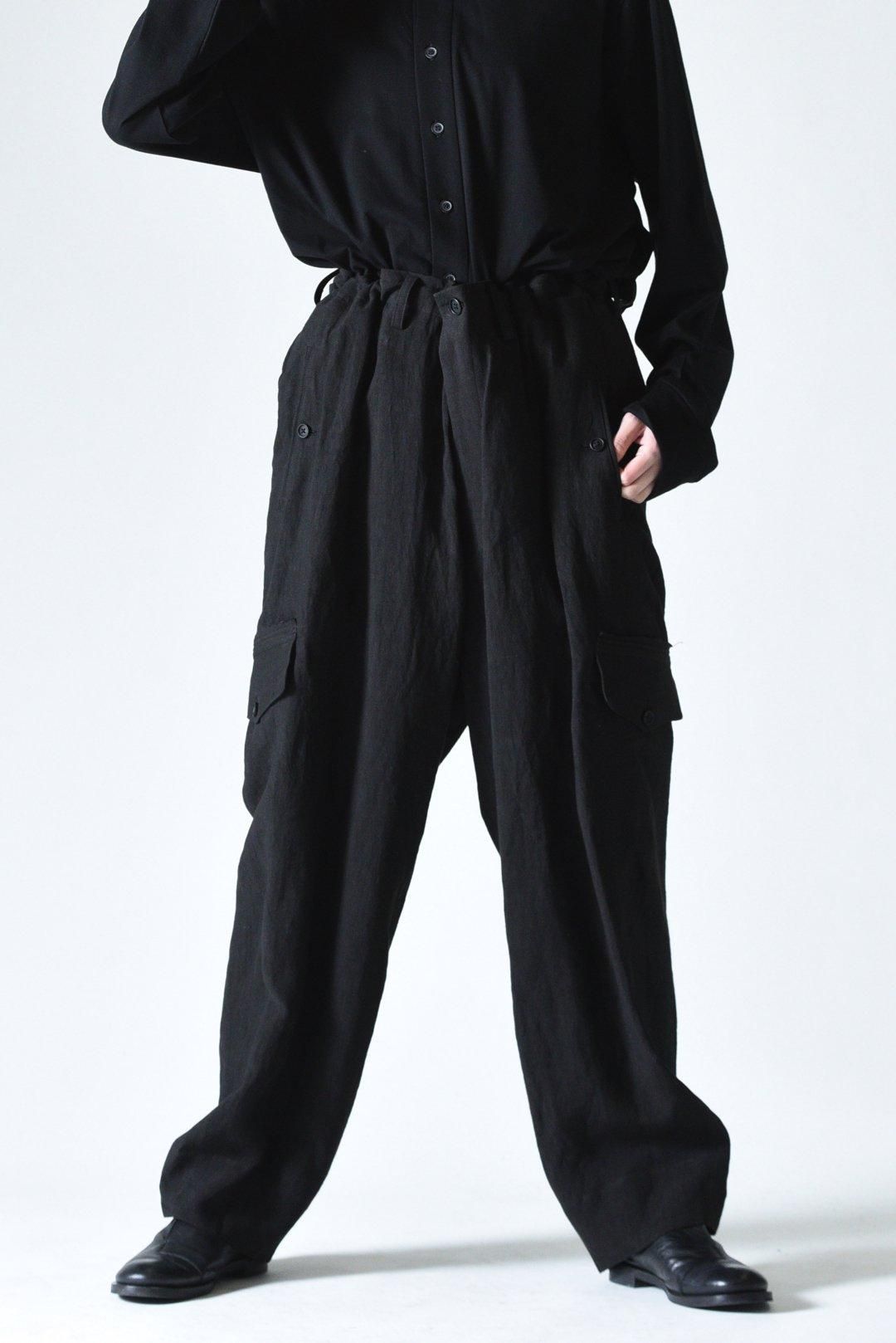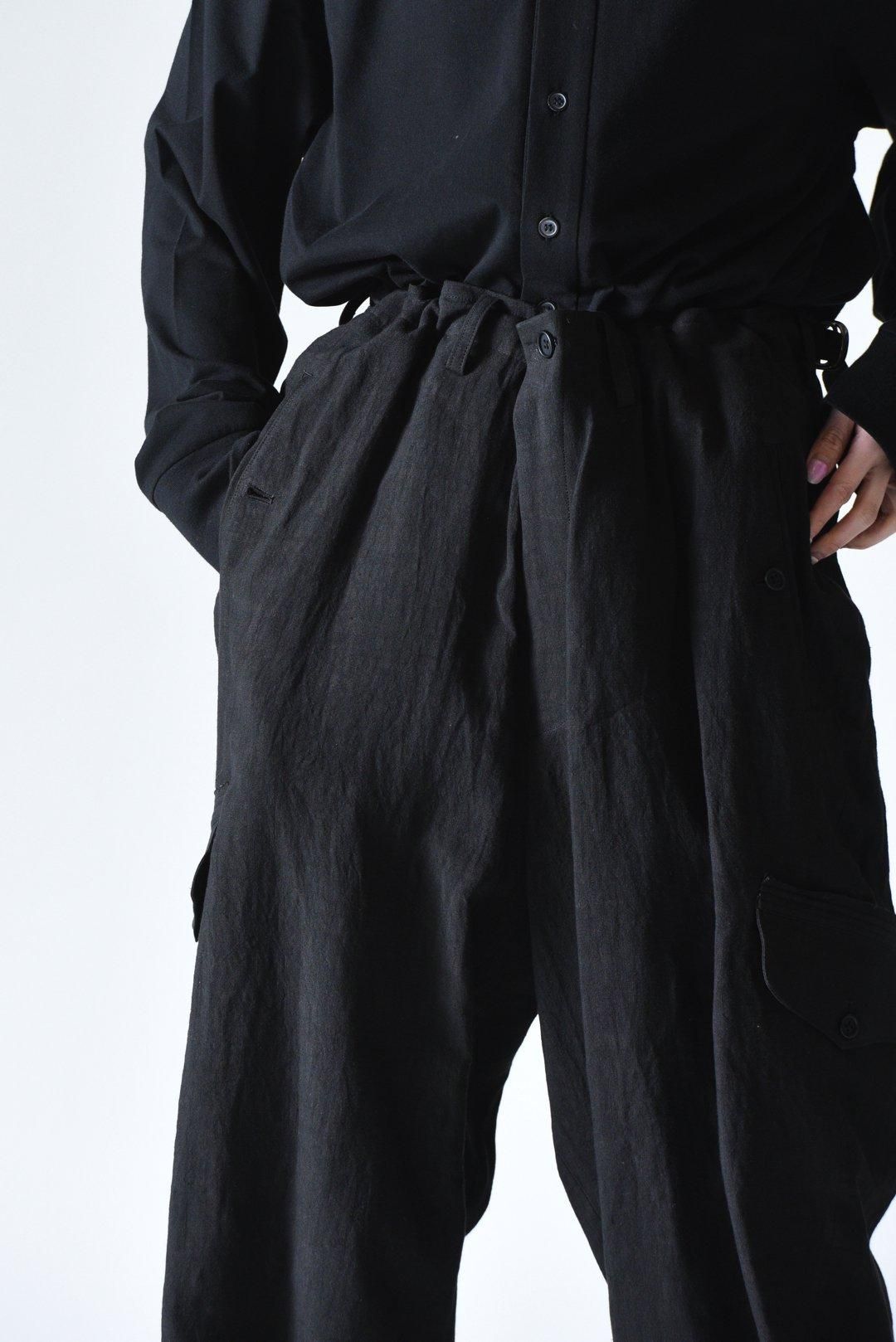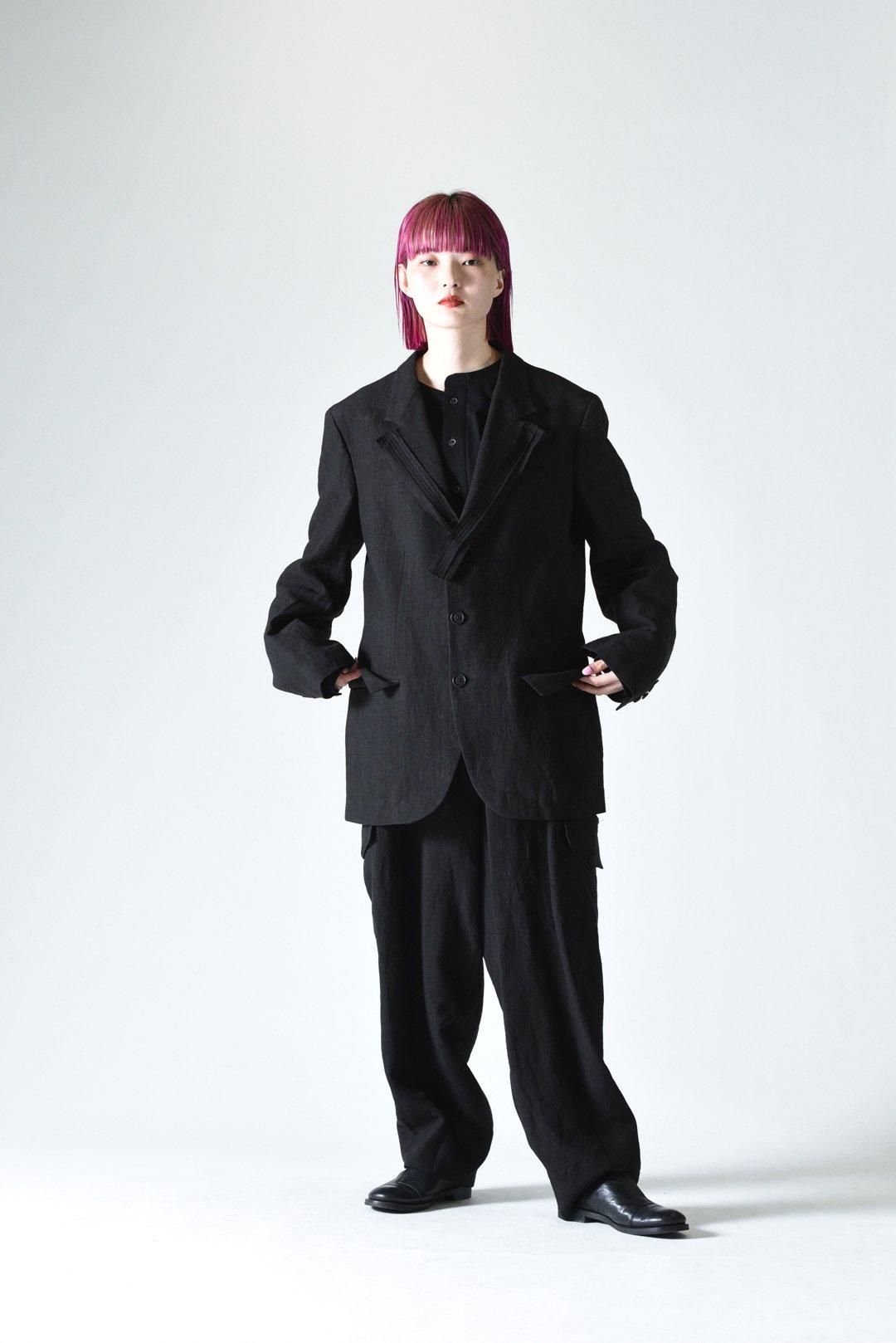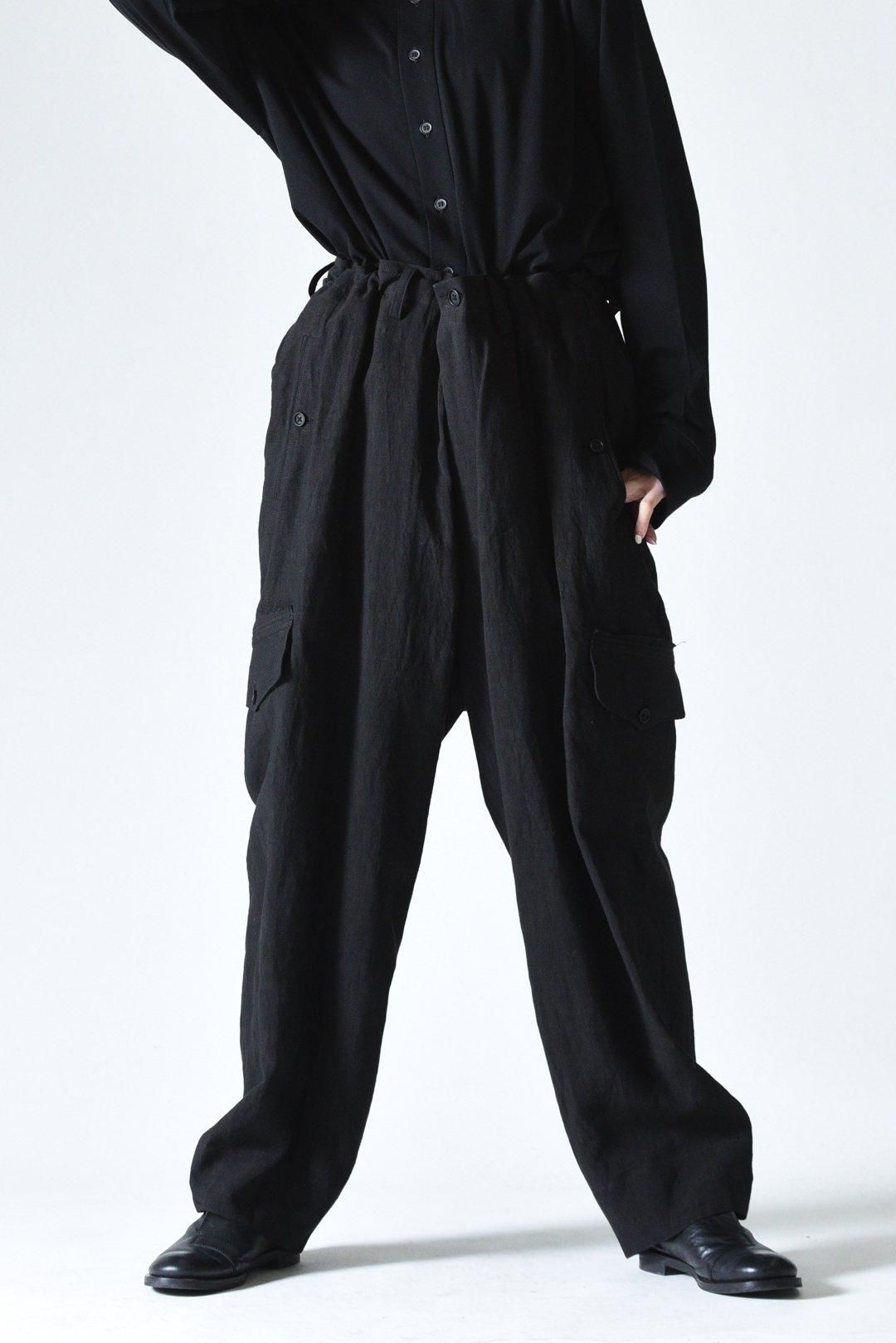 Yohji Yamamoto POUR HOMME SPRING/SUMMER 2024 COLLECTION LOOK15に登場したリネンサスペンダーパンツ。