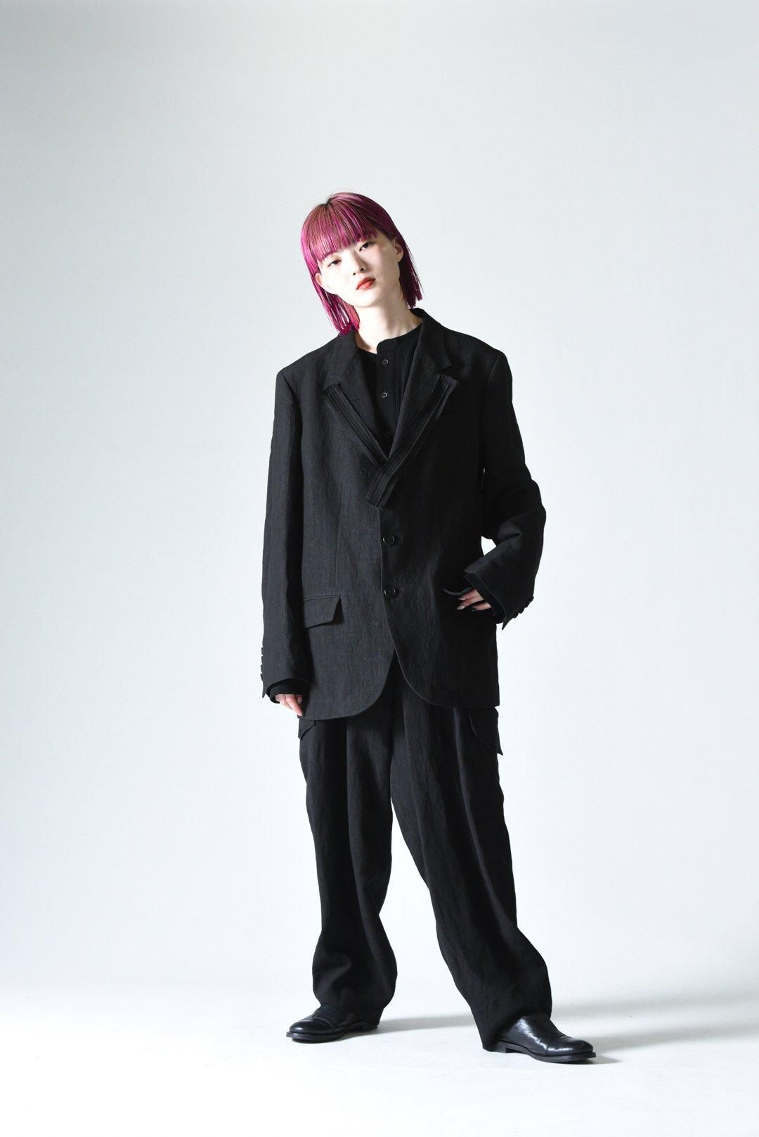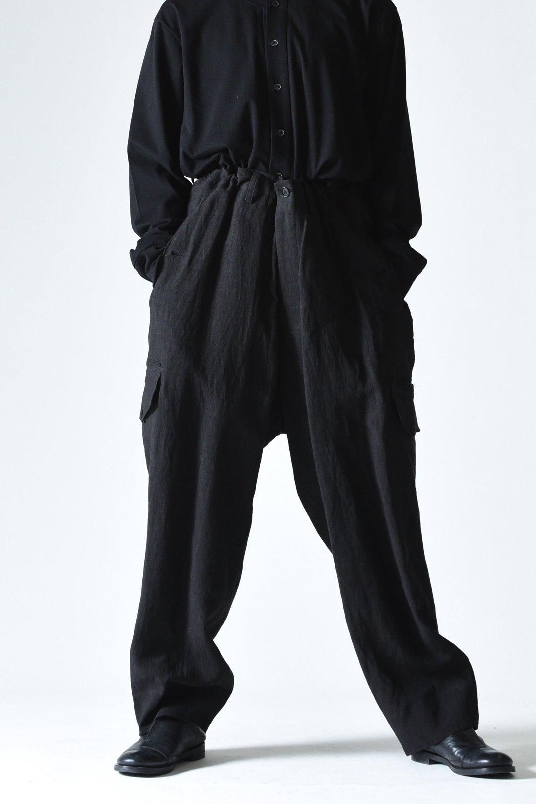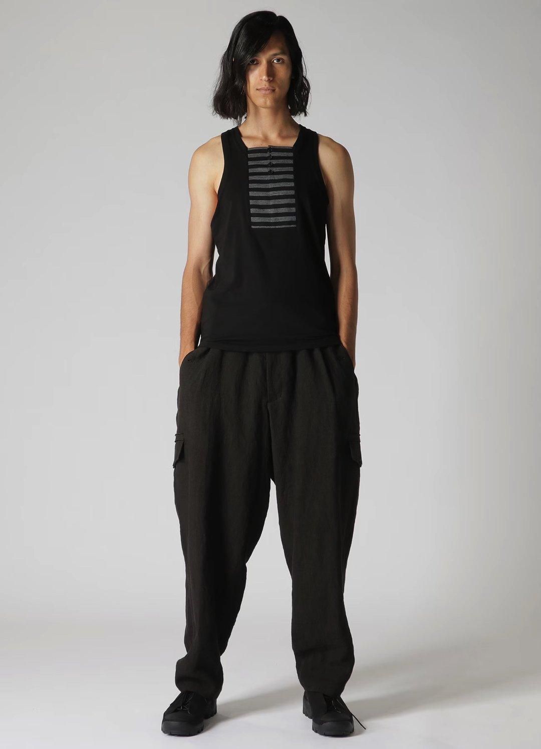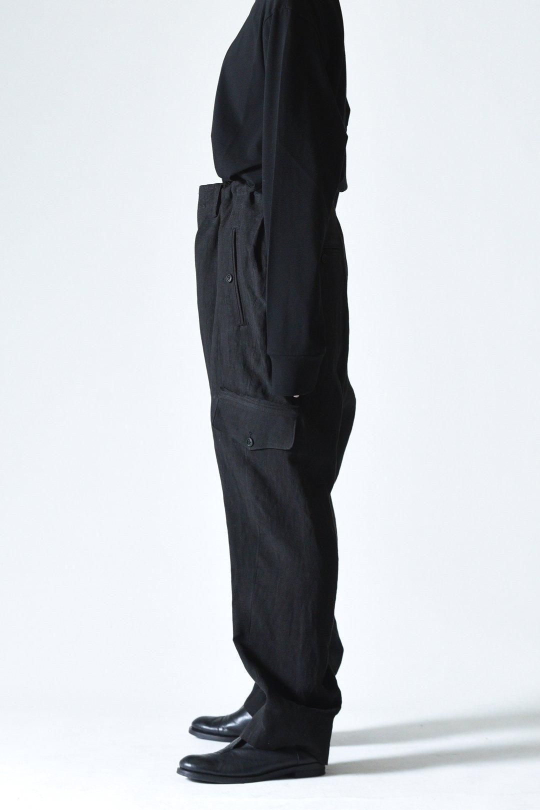 Yohji Yamamoto POUR HOMME SPRING/SUMMER 2024 COLLECTION LOOK15に登場したリネンサスペンダーパンツ。