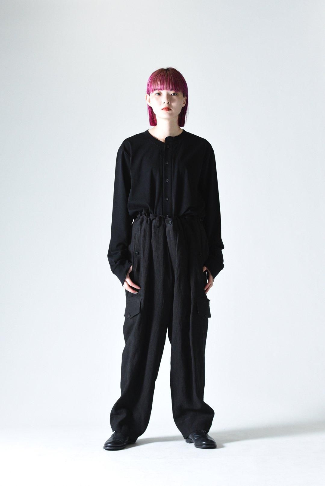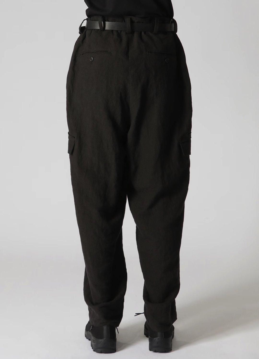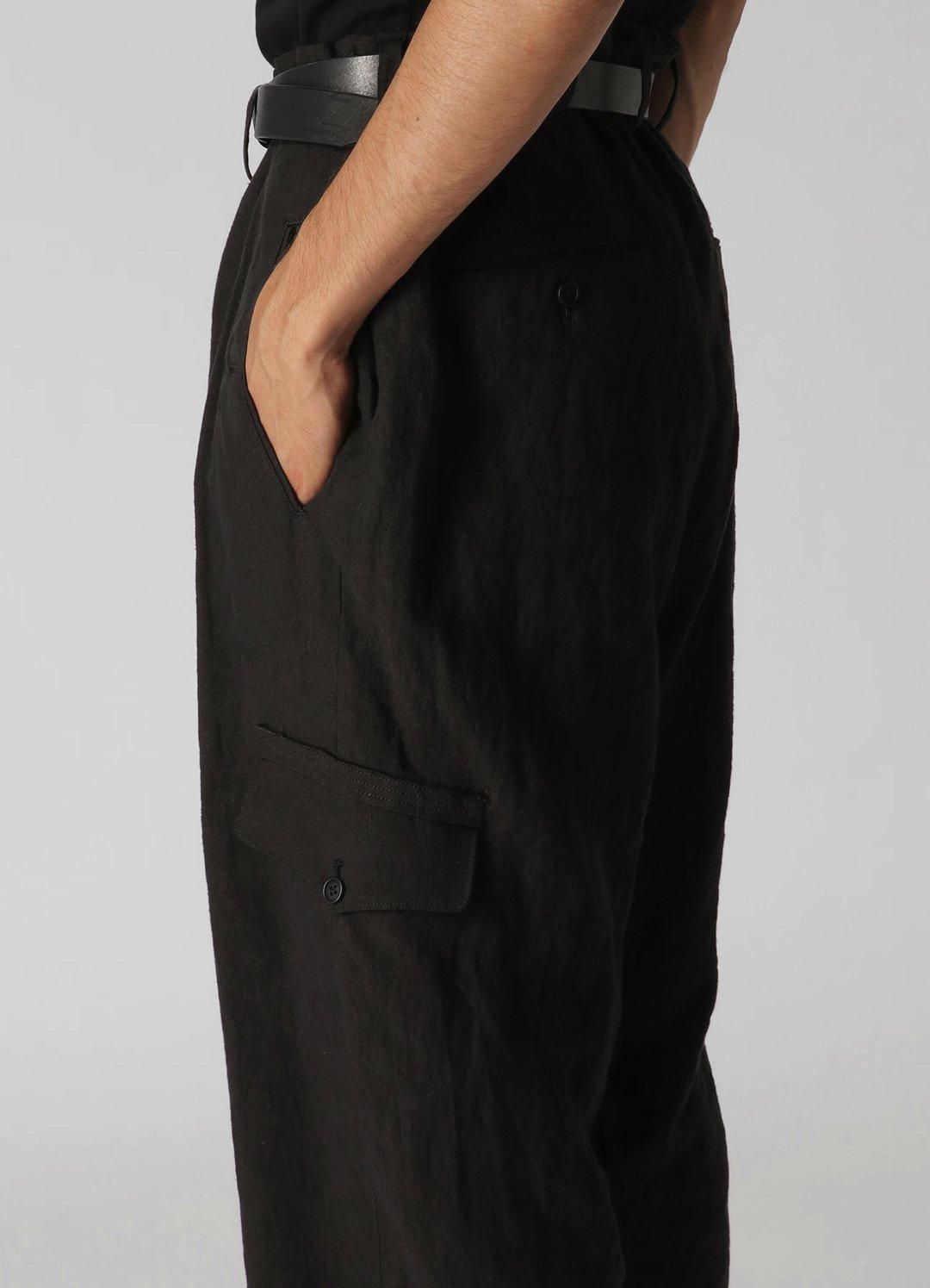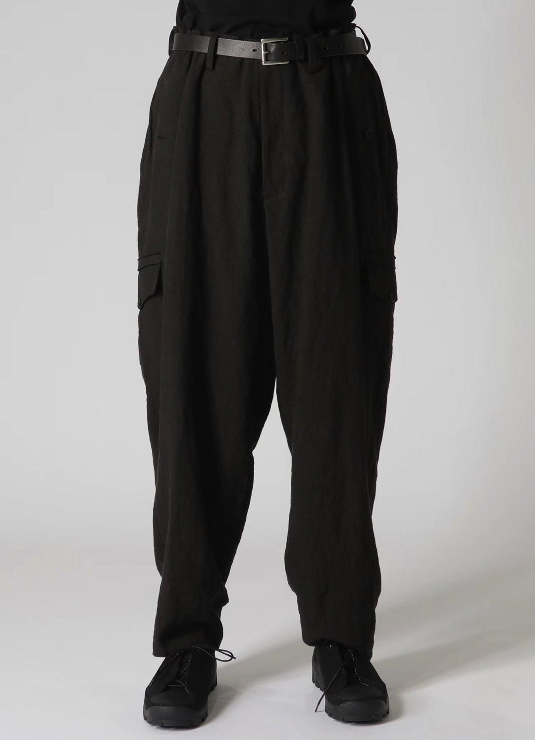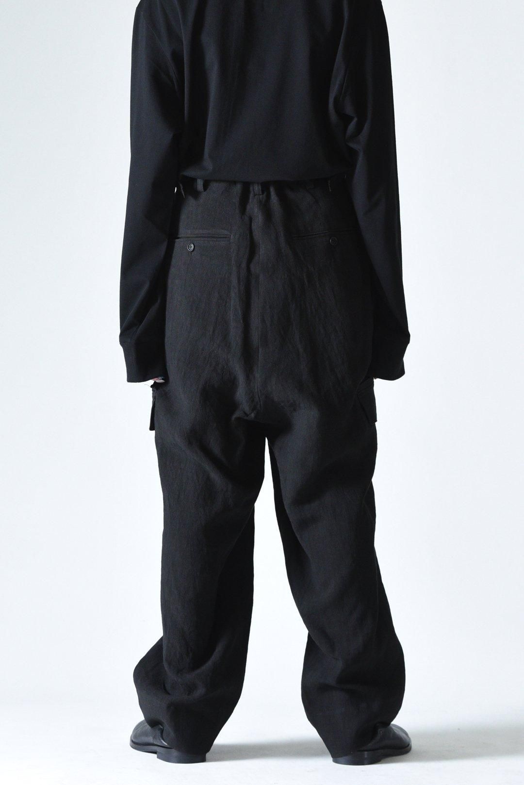 Yohji Yamamoto POUR HOMME SPRING/SUMMER 2024 COLLECTION LOOK15に登場したリネンサスペンダーパンツ。