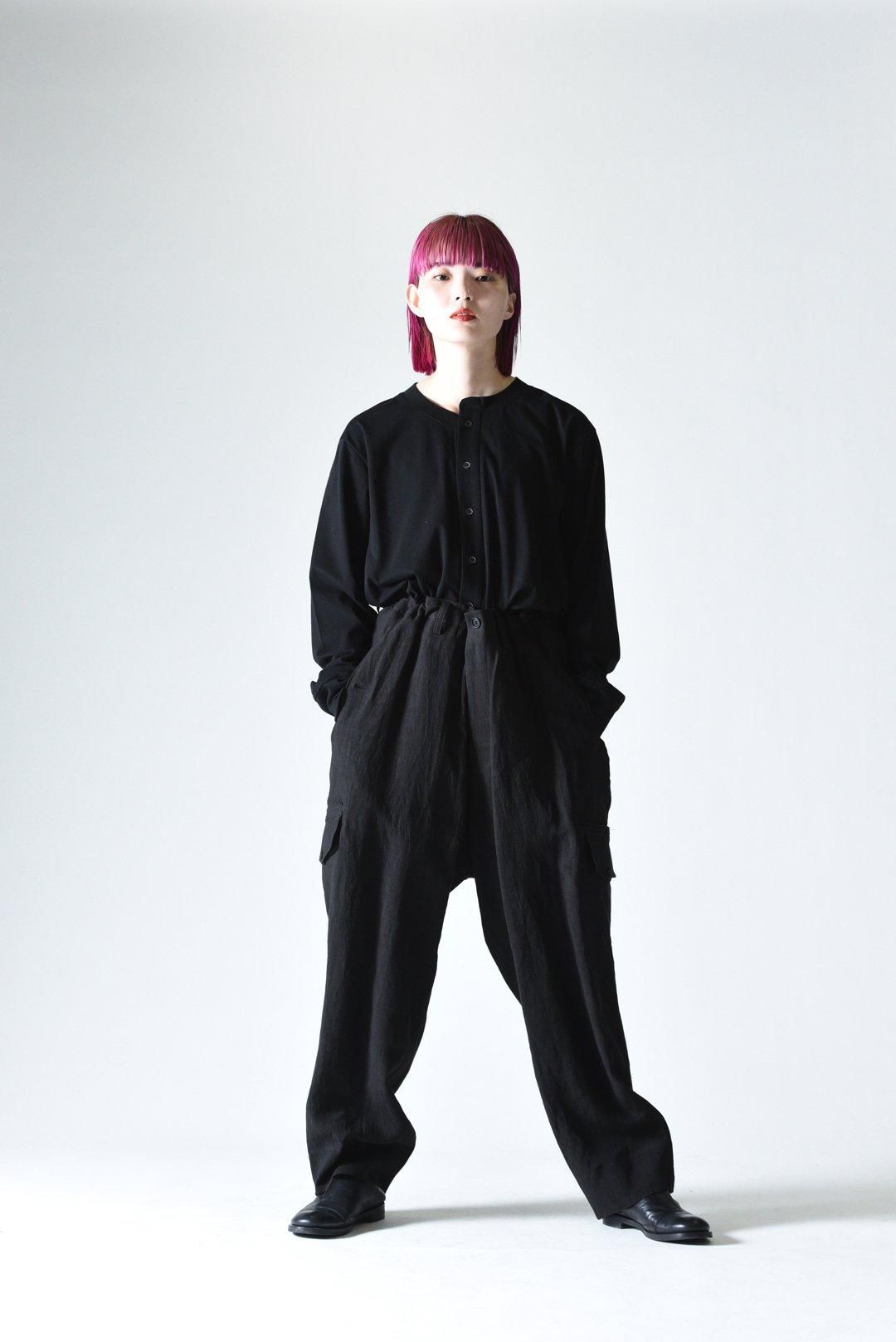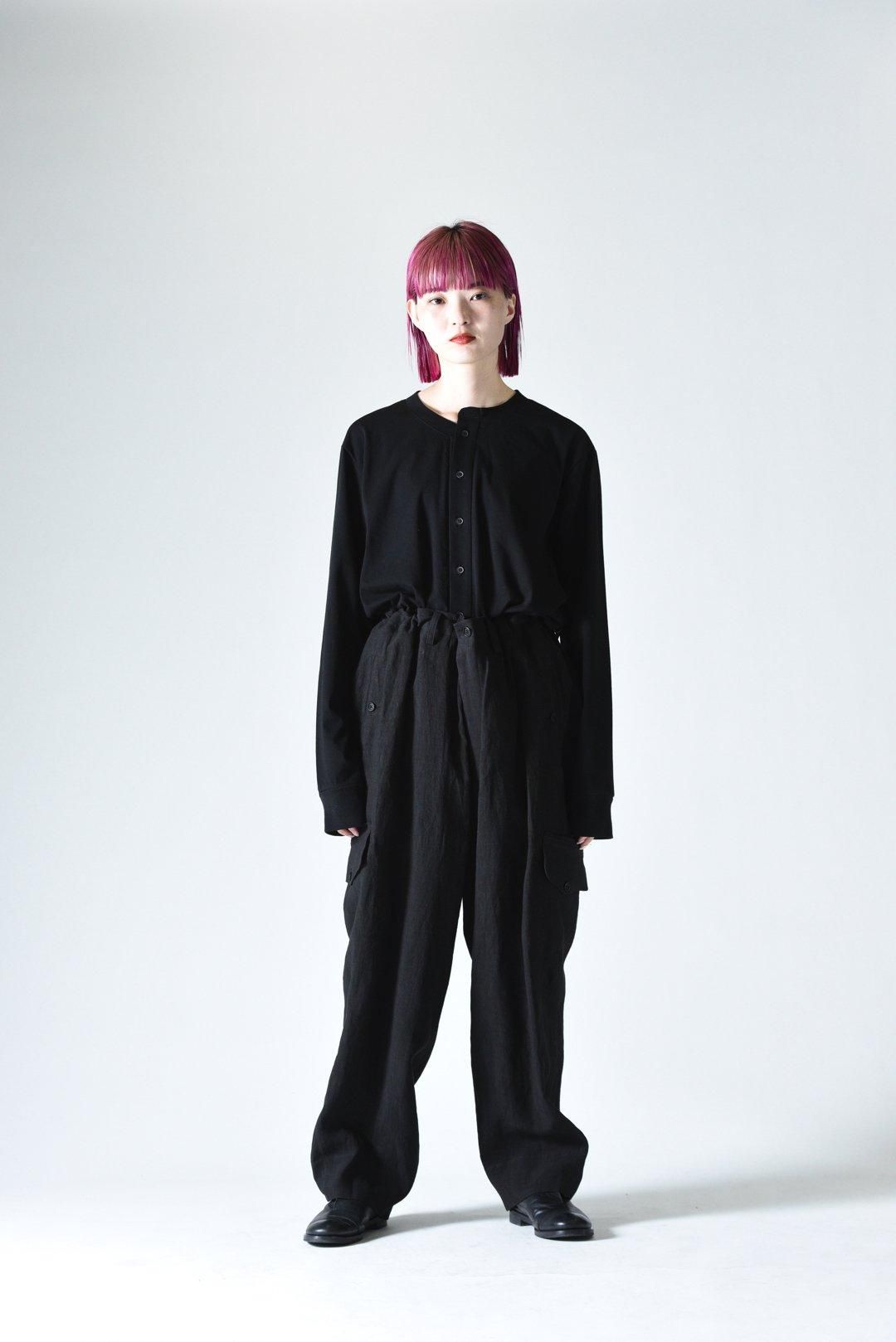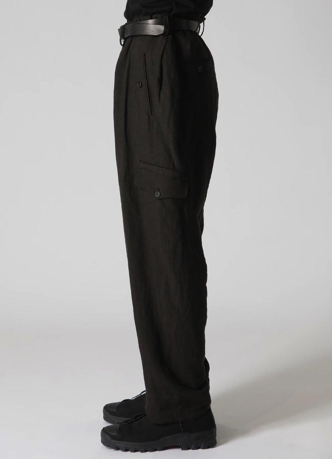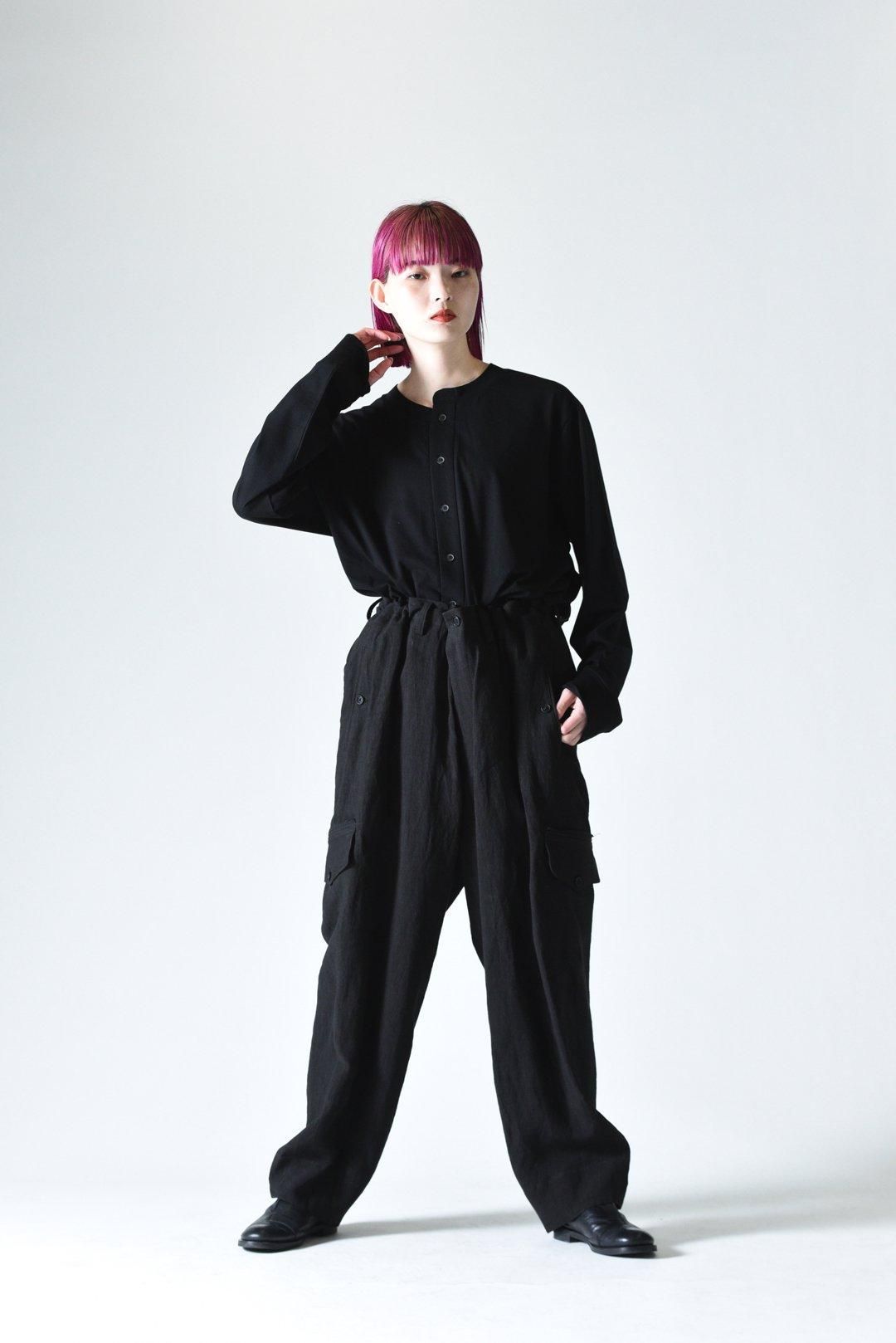Yohji Yamamoto POUR HOMME SPRING/SUMMER 2024 COLLECTION LOOK15に登場したリネンサスペンダーパンツ。