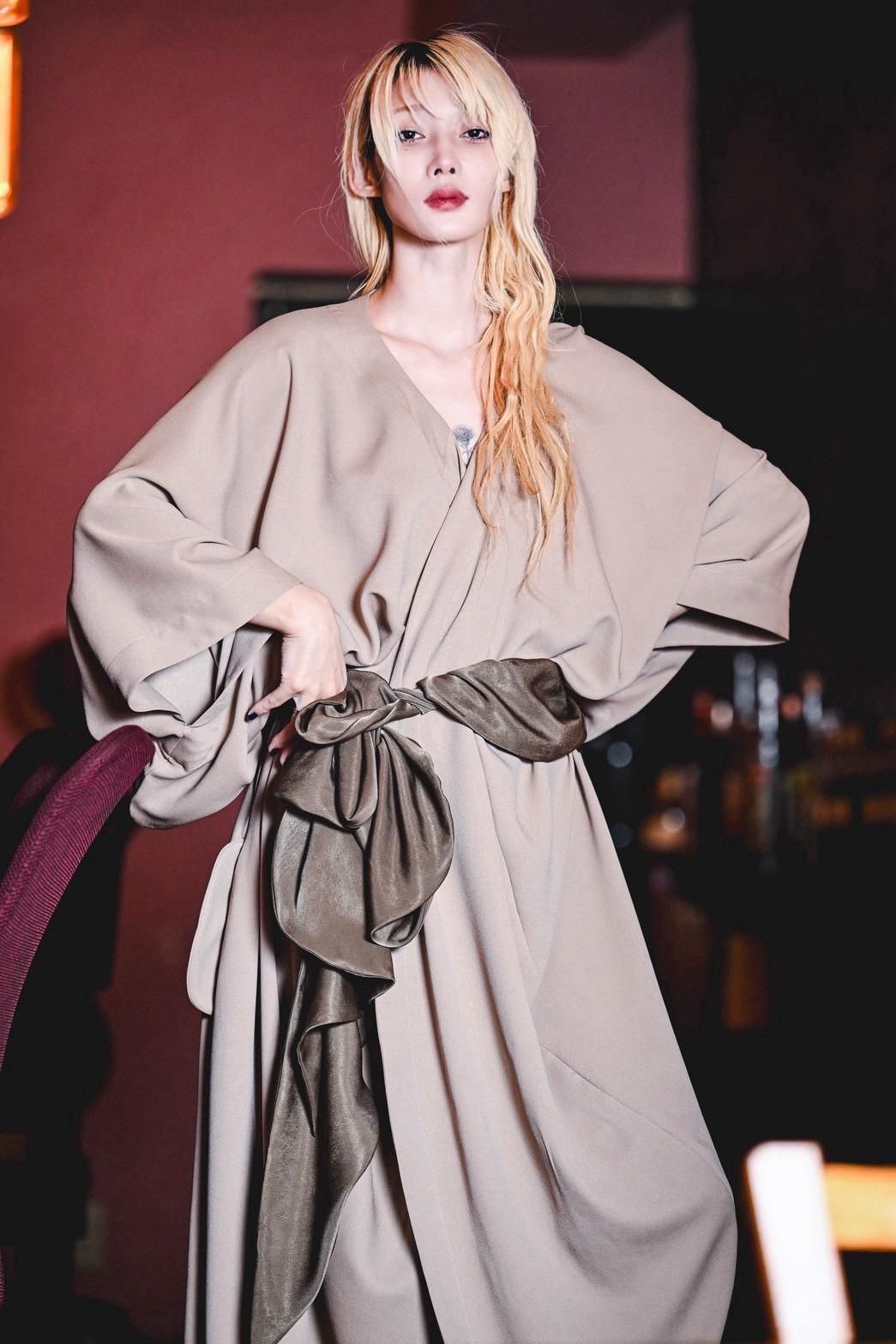 非常に落ち感良くドレープの美しいバックサテン生地を使用。